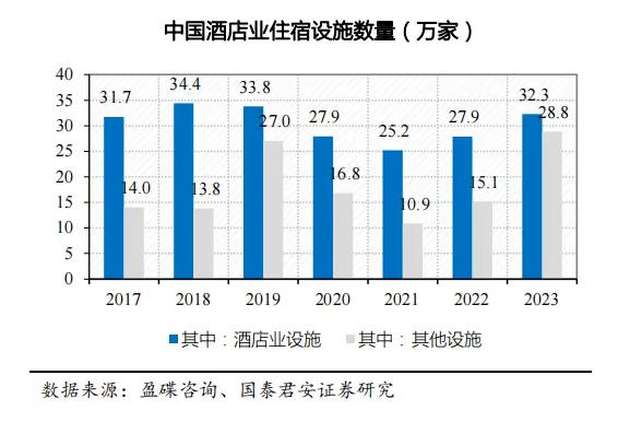全国酒店数量在 23 年,迅速恢复到了 32.3 万家,2024 年达到 34.87 万家,已经超过了 18 年的峰值。