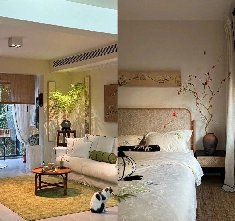 完全可以用中式风格家具(包括但不限于矮柜、条凳、圈椅),搭配一些造型简洁的现代家具,相信我,不仅不会有违和感,反而还能提升高级感。
