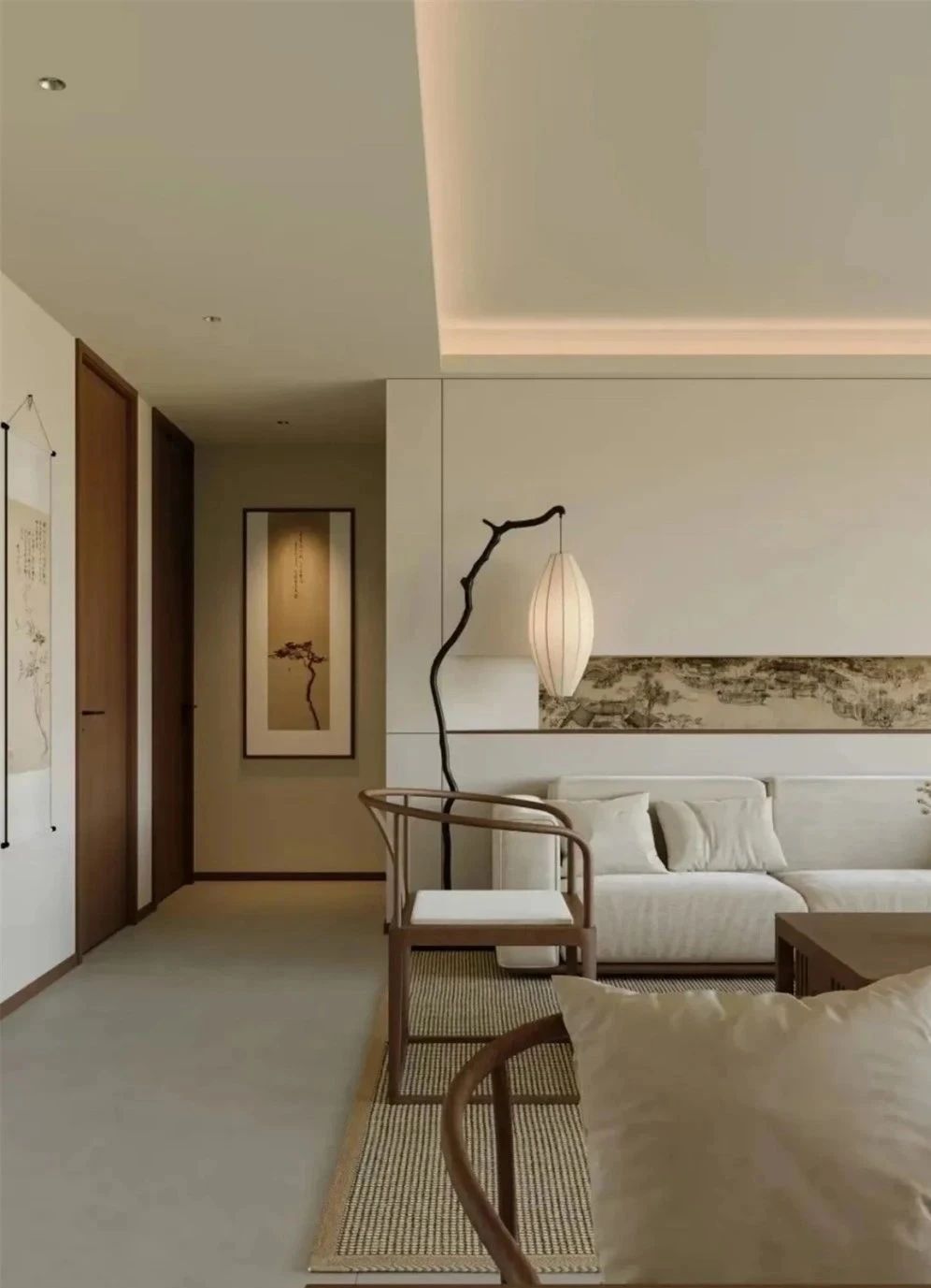 吊顶要么就做满吊无主灯,要么就直接不做吊顶装吸顶灯,但无论如何,别选那种几年前所谓新中式风会选的厚吸顶灯,也别做繁复的吊顶灯槽。