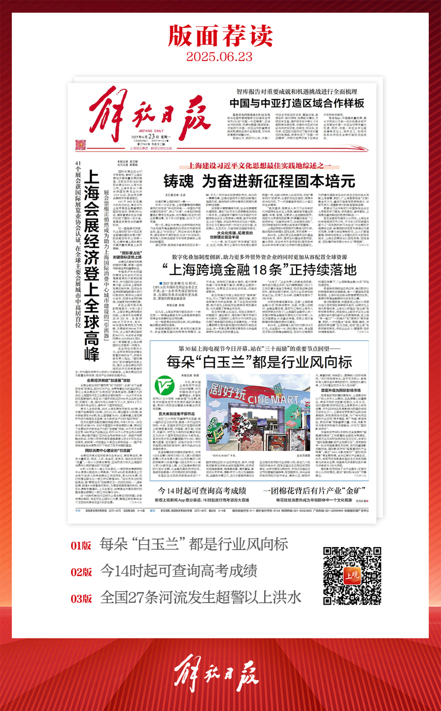 早上好!上观新闻『早读』来啦!2025年6月23日 星期一 农历五月廿八上海阴到多云有时有阵雨,22~25℃