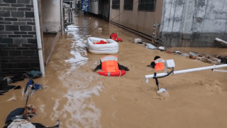 武警救援官兵携带冲锋舟、皮划艇等装备第一时间赶赴灾区,转移受灾群众。救援过程中,官兵们接到一名母亲的求助,家中三名年幼的孩子被困在洪水淹没的巷子深处。